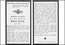 ∞ 22.6.1901 Heinrich Koch; 9 K., davon 3 früh †, 2 erwachsene Töchter †; Druck in Rheydt-Giesenkirchen |