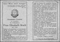 Eltern: Peter Prick u. Anna-Maria Lambertz; ∞ 24.1.1920 Anton Koch; 4 K, davon 2 †; 1 Sohn in Kriegsgefangenschaft; Druck in Rheydt-Giesenkirchen |