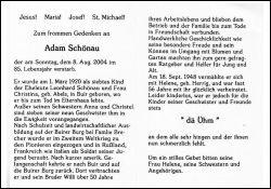 Eltern: Leonhard Schönau u. Christina geb. Abels; von 9 Geschw.leben Anna u. Christel; landw. Ausbildung b. Fam. Brecher auf Buirer Burg; Soldat; danach mit Br.Willi auf Buirer Burg; ∞ 18.9.1948 Helene Herrig |