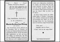 Eltern: Heinrich Schröder u. Katharina geb. Bosch; ∞ 25.11.1894 Leonhard Stump aus Gubberath; 2 K.; 19440 Goldhochzeit; Druck in Grevenbroich |
