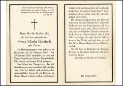 ∞ 20.1.1932 Franz Berrisch aus Güsten; 1 K.; Zwangsevakuierung gegen Kriegsende; nach Rückkehr ließ ihre Gesundheit stark nach |