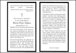 Rangierführer i. R.; Mitgl. St.-Matthias-Bruderschaft; Eltern: Heinrich Schnee u. Gertrud geb. Kartenholz; ∞ 4.10.1919 Anna Cäcilia Schwartz aus Gohr; 5 K., davon 1 früh †; 2 Söhne im 2. Weltkrieg gefallen; 43 J. im Dienst der Bundesbahn; Druck in Dormagen |