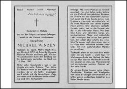 Eltern: Heinrich Winzen und Anna geb. Winzen, 10 Kinder; Gefallener des 2. Weltkriegs; Anfang 1943 in Russland vermisst; Heimkehr als todkranker Mann |