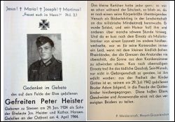 Gefallener 2. Weltkrieg; Eltern: Josef Heister u. Katharina geb. Hansen; kleinwüchsig; abgebrochene Bäckerlehre, danach in der Landwirtschaft tätig; als Malariakranker ins Lazarett, danach wieder an die Front; Bruder Adam am 29.7.1942 gefallen |