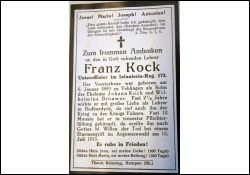 Gefallener 1. Weltkrieg; war 2 1/2 Jahre lang Lehrer in Bedburdyck; 1914 Einberufung |
