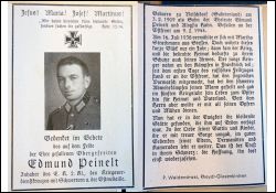 Gefallener 2. Weltkrieg; Eltern: Edmund Peinelr u. Aloysia geb. Hahn; ∞ 16.7.1938 Martha Strathmann aus Stessen; Kinder ; als Soldat in Frankreich, dann Ostfront |