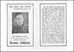 Eltern: Roman Schimke u. Agnes geb. Reitz; einziger Sohn; im Baugewerbe tätig; 1940 Soldat in Belgien u. Frankreich; danach Russland; Rückzug, am 28.1.1945 wieder auf deutschem Boden |