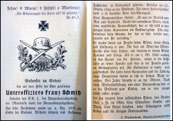 Gefallener 2. Weltkrieg; Eltern: Wilhelm Schmitz u. Katharina geb. Faßbender; 1.19.1940 Einberufung; 3 Jahre an der Ostfront; nach Verwundung u. Genesung an die Westfront; Bruder Theo zurzeit Soldat im Osten; verlobt (Lenchen) |