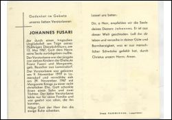 Tod durch Unfall; Eltern: Franz Fusari u. Margarete geb. Leuscher; ∞ 29.11.1947 Margarete Krings; 3 Kinder; Druck in Langerwehe |