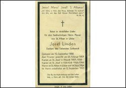 Dechant, Pfarrer; Priesterweihe 23.2.1907; Kaplan in Rheydt, Köln-Kalk, Pfarrer in Liblar, Dechant Dekanat Lechenich |