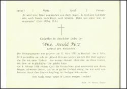 ∞ 6.2.1919 Arnold Pütz aus Geich b. Zülpich † 22.10.1959; 1 K. |