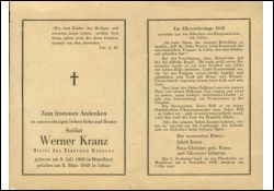 ∞ Christine Wierz; im 2. Weltkrieg gefallen; bei Verteidigung einer Bahnbrücke in Liblar von tödlicher Kugel getroffen; mit noch 12 Kameraden auf dem Friedhof in Liblar beerdigt |