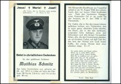Eltern: Wilhelm Schmitz und Veronika Wind; ∞ 14.8.1940 Margarethe Buschheuer aus Frauenthal; 1 K.; Gefallener 2. Weltkrieg |