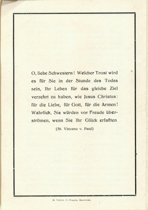 12.03.1905 Ordenseintritt Töchter der chr. Liebe v. hl. Vinzenz v. Paul; St. Josefs-Krankenhaus Düsseldorf-Oberbilk; Opfer 2.Weltkrieg |