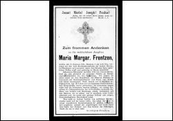 Jungfrau; Haushälterin b. Geistlichen, die letzten 33 J. b. Pfarrer Dückers in Loevenich, vor 20 Monaten †; danach war ihr Leben nur ein langsames Dahinsiechen |
