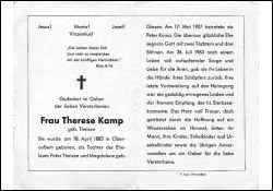 Eltern: Peter Theisen u. Magdalene geb. Giesen; ∞ 17.5.1907 Peter Kamp; 5 K. (Oberaußem) |