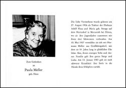Eltern: Adolf Haas u. Maria geb. Strepp; ∞ 10.5.1927 Hermann Meller aus Großkönigsdorf; 55 J. Ehe; 1 Sohn |