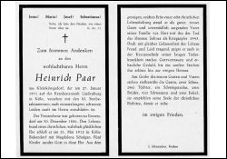 Aus Kleinkönigsdorf; ∞ 21.5.1912 in Köln-Bickendorf Magdalena Schafgan; 5 K.; 1 Sohn 1943 im 2. Weltkrieg gefallen; |