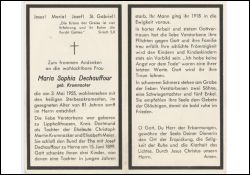Eltern: Christoph Martin Krumnacker u. Elisabeth geb. Meier; ∞ 15.6.1899 Josef Dechauffour zu Herne, † 1918; 1 Tochter, †; 2 überlebende Söhne |