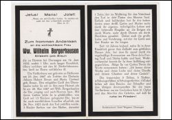 Eltern: Johann Hubert Braun u. Maria Gertrud geb. Braun; ∞ 28.5.1887 Wilhelm Bergerhausen, Horrem, † 24.11.1925, 13 Kinder, davon 2 † und 1 Sohn im 2. Weltkrieg gefallen (Marine); |