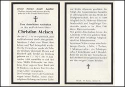 Eltern: Christoph Meisen u. Elisabeth geb. Fendel; ∞ 11.9.1898 Anna Sibilla Holzweiler aus Butzheim; 10 Kinder, davon 8 †; Mitgl. Gemeinderat Straberg;Mitgl. U. Vorsitzender St. Hubertus-Schützenbruderschaft |