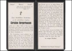 Unverheiratet; Eltern: Wilhelm Bergerhausen u. Elisabeth geb. Braun; Jungfrauenkongregation; sie hatte ein schweres Kreuz zu tragen |