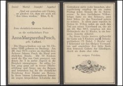 ∞ 20.6.1874 Ackerer Johann Pesch, 10 Kinder, davon 3 früh †, 2 Söhne im 1. Weltkrieg gefallen |