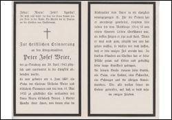 Kriegsinvalide des 1. Weltkrieges, er starb an seinem Kriegsleiden; Eltern: Wilhelm Weier u. Elisabeth Stammen; ∞ 19.5.1920 Anna Maria Elisabeth Breuer, 3 Kinder, davon 1 früh † |