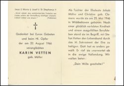 Tod durch Unglücksfall; Eltern: Jakob Müller u. Christine geb. Clemens; starb kurz vor der kirchlichen Heirat mit Stefan Vetten |