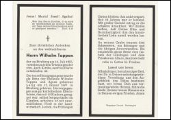 Eltern: Wilhelm Tappen u. Agnes geb. Lang, 15 Kinder; Landwirtschaft; seit 18 Jahren leidend; 3 überlebende Schwestern |