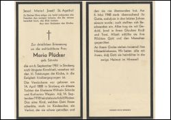 Eltern: Wilhelm Schmitz u. Katharina Eyers; ∞ 14.9.1918 Adolf Plücker, † 4.5.1948, 1 Kind, früh † |