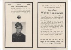 Gefallener 2. Weltkrieg; Eltern: Wladislaus Tadajewski u. Josefine geb. Nellessen; im Juni 1943 war er bereits bei Orel verwundet worden |