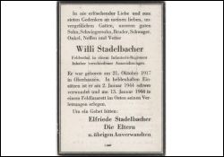 Gefallener 2. Weltkrieg; am 2.1.1944 schwer verwundet; verheiratet mit Elfriede Stadelbacher |