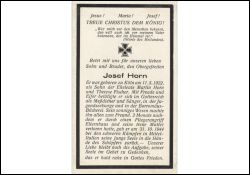 Gefallener 2. Weltkrieg; 2 Monate vor seinem Tod verlor er Elternhaus und seine Mutter durch einen Fliegerangriff; Eltedrn: Martin Horn u. Therese geb. Fischer, † 1944 |