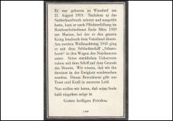 Gefallener 2. Weltkrieg; Matrose auf dem Schlachtschiff "Scharnhorst" |