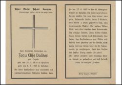 ∞ 27.6.1903 Fuhrunternehmer Wilhelm Valdor, 5 Kinder, davon 2 †; die beiden Söhne als Soldaten im Krieg Tochter Käthe verh. Külser folgte ihrem Mann nach Dänemark |