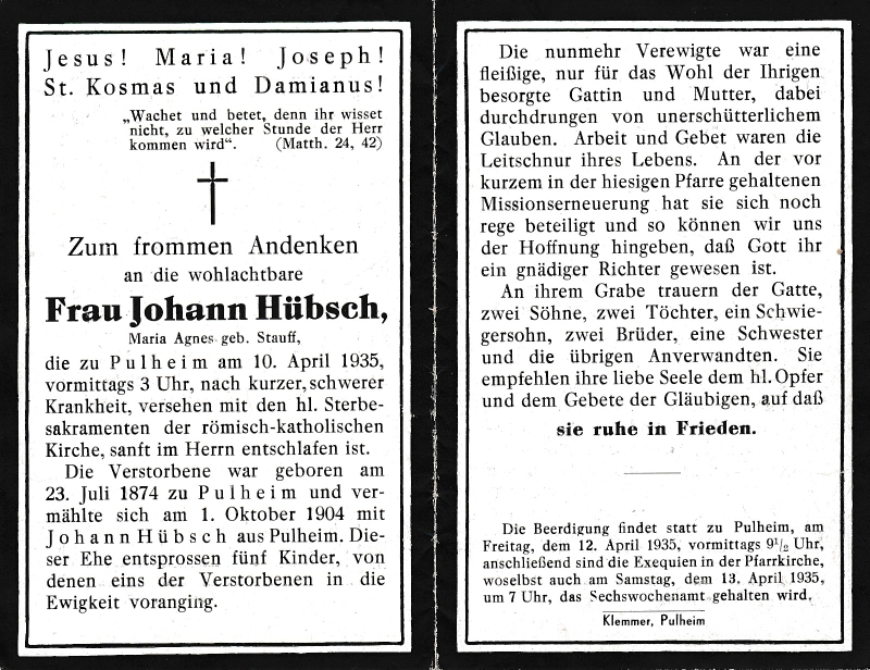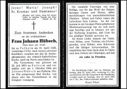 ∞ 1.10.1904 Johann Hübsch aus Pulheim; 5 K., davon 1 †; |