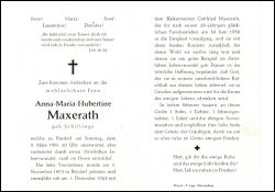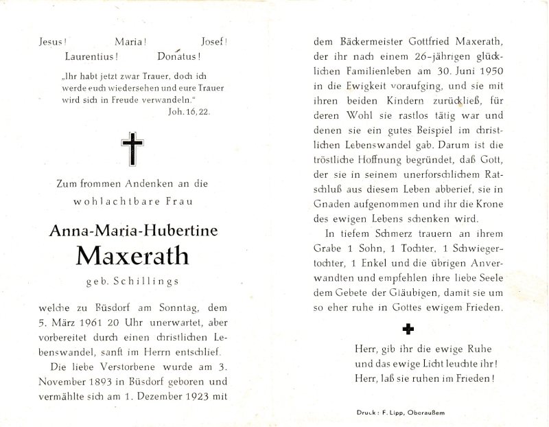 ∞ 1.12.1923 Bäckermeister Gottfried Maxerath, † 30.6.1950; 2 K. |