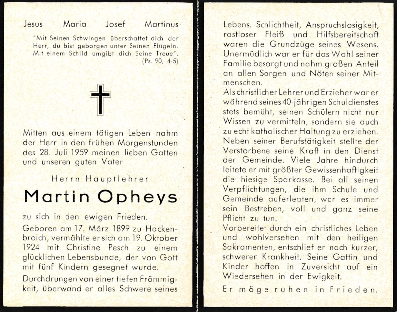 Hauptlehrer; ∞ 19.10.1924 Christine Pesch; 5 Kinder; 40 J. Schuldienst; viele Jahre Leiter der hiesigen Sparkasse; |