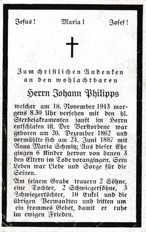 ∞ 24.6.1887 Anna Maria Schmitz, 6 davon 3 † |