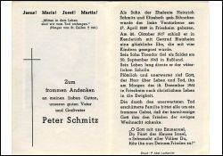 Eltern: Heinrich Schmitz und Elisabeth, geb Söhnchen; ∞ Gertrud Blatzheim |