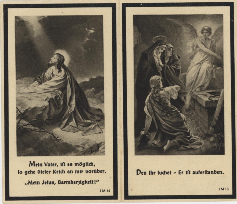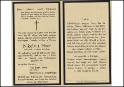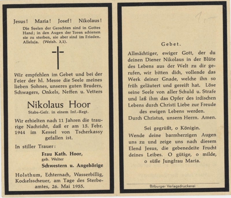 Gefallener 2. Weltkrieg; ∞ Katharina Katharia Welter; sie erhielt die Todesnachriocht erst 11 J. Später 1955; Wohnort Holsthum; Druck in Bitburg |