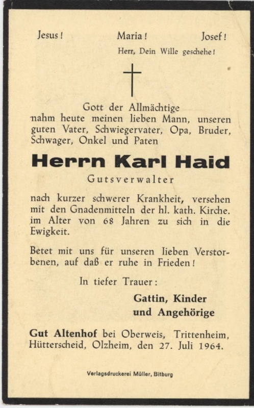 68 J.; Gutrsverwalter Gut Altenhof in Oberweis; Druck in Bitburg