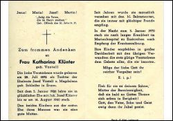 Eltern: Josef Vostell und Magdalene, geb Schleifer; ∞ Joh Josef Klünter |