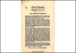 Gefallener 2. Weltkrieg; Grenadierleutnant; Eltern: Joseph Feuser und Mechtilde Feuser, geb. Langen |