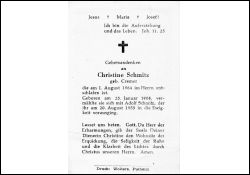 ∞ Adolf Schmitz, † 20.8.1955 (Druck in Pulheim) |