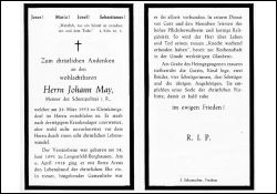 Meister der Schutzpolizei i.R.; ∞ 6.4.1918 Berta Arens; Tochter Inge |
