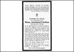 ∞ 3.3.1878 Gerhard Hubert Clotten; langes, schweres Leiden; viele Kinder, 1 im Ordensstand |