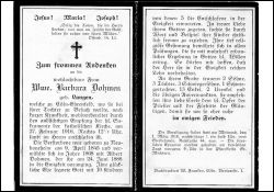 ∞ 1868 Albert Dohmen, † 24.6.1886; 10 K., davon 5 †; bei Besuch in Köln-Ehrenfeld verstorben |