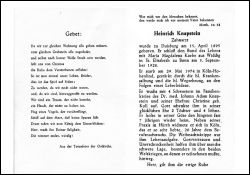 Eltern: Dr. med. Johann Adam Knapstein u. Christine geb. Koll; ∞ 3.9.1928 in Bonn Maria Magdalena Kaebe aus Widdig; 6 K., davon 1 früh †; Zahnarzt; Praxis in Hürth; Teilnahme an beiden Weltkriegen |